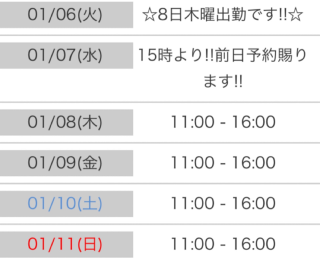 出勤予定♡ 01/06 19:29