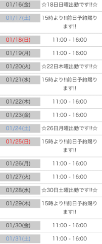 1月後半の出勤予定♡ 01/16 17:33