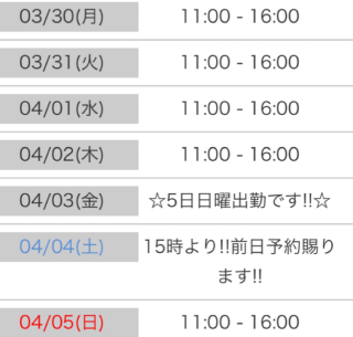 今週の出勤予定♡ 03/30 10:06