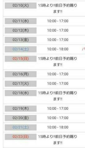 あいり~💌明日(火)は休み:明後日(水)10時から出勤します ❤️ 02/09 21:27